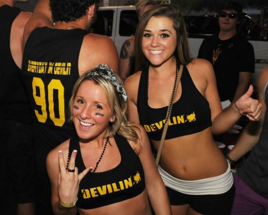 This picture was taken before the ASU-Mizzou game a couple years ago. The blonde girl in the photo literally got down on her knees at the post game party, reached up the leg of my shorts, and grabbed my dick. Then she and her friend (in the photo) proceeded to pass out on top of each other on the couch.