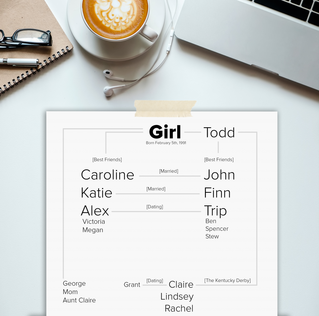 “It’s a bunch of coworkers from Caroline’s work,” he whispered back. “Finn and Katie are in Napa with Finn’s parents, and Trip and Alex got invited to a different party before we invited them here.”